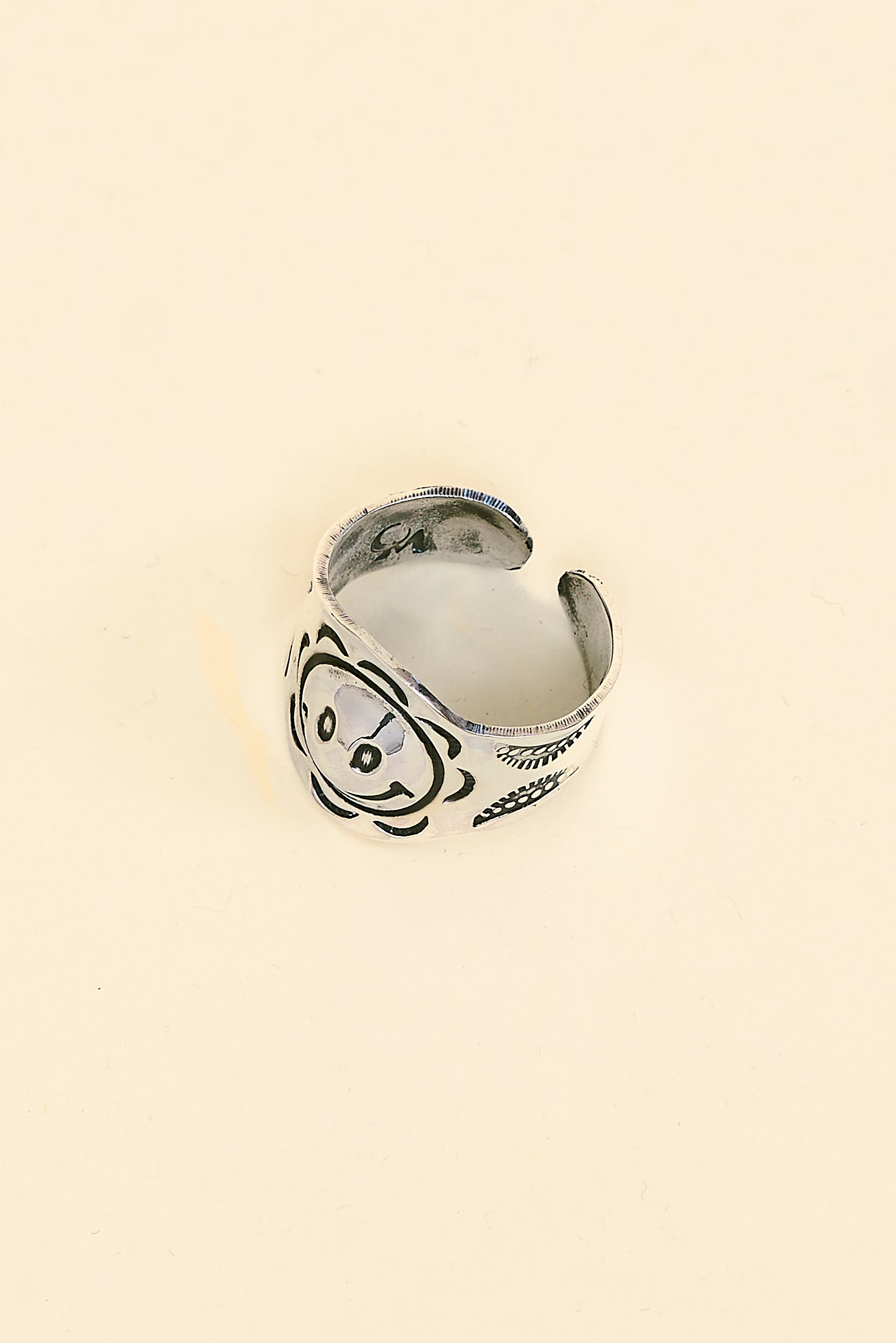 This Munqa Ring is handcrafted from solid 925 sterling silver, combining traditional Native American motifs with a playful “Big Sunny” design for a modern twist on Native-inspired jewellery.