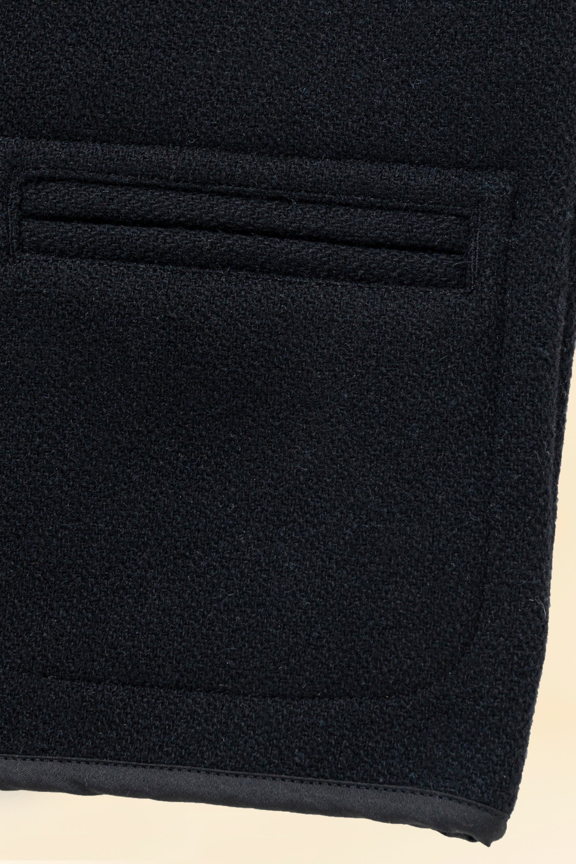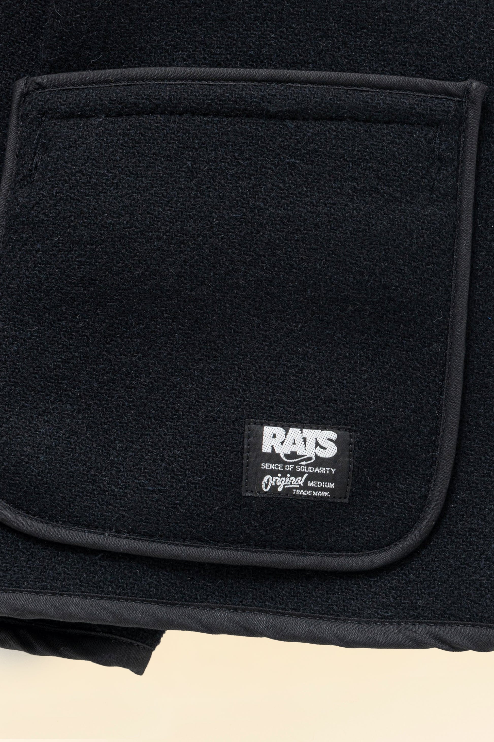 Made from 100% Melton wool, it has a structured feel that maintains shape and warmth. Functional pockets, a WALDES zipper, and a metal RATS logo plaque add utility and character. Piping along the collar, placket, hem, and armholes creates a refined finish, while the slightly fitted body offers a clean silhouette.