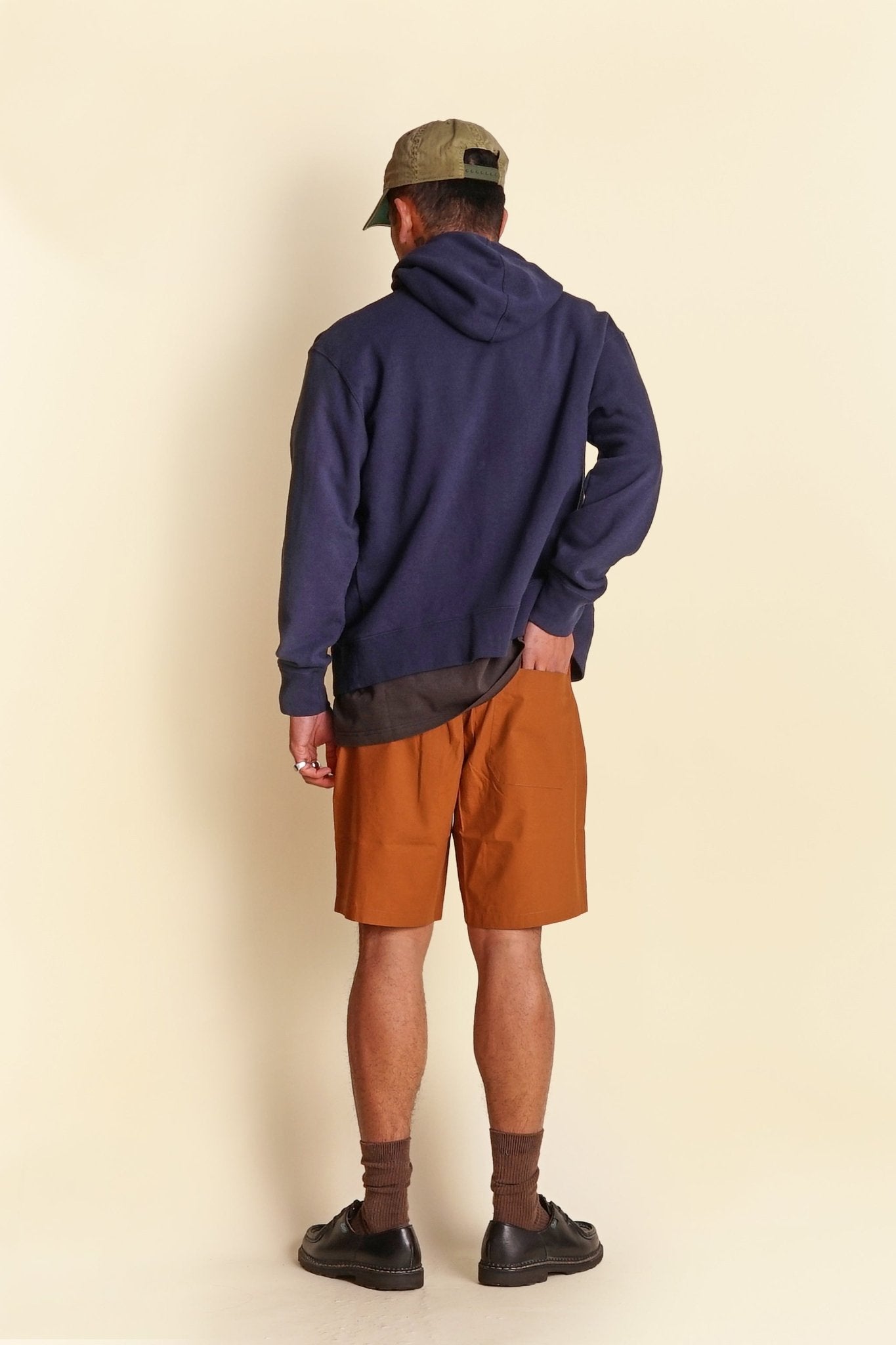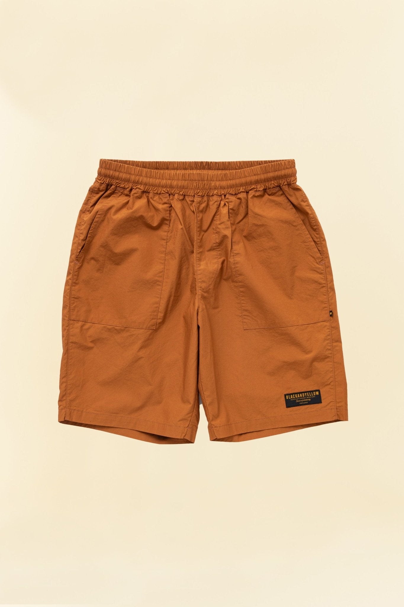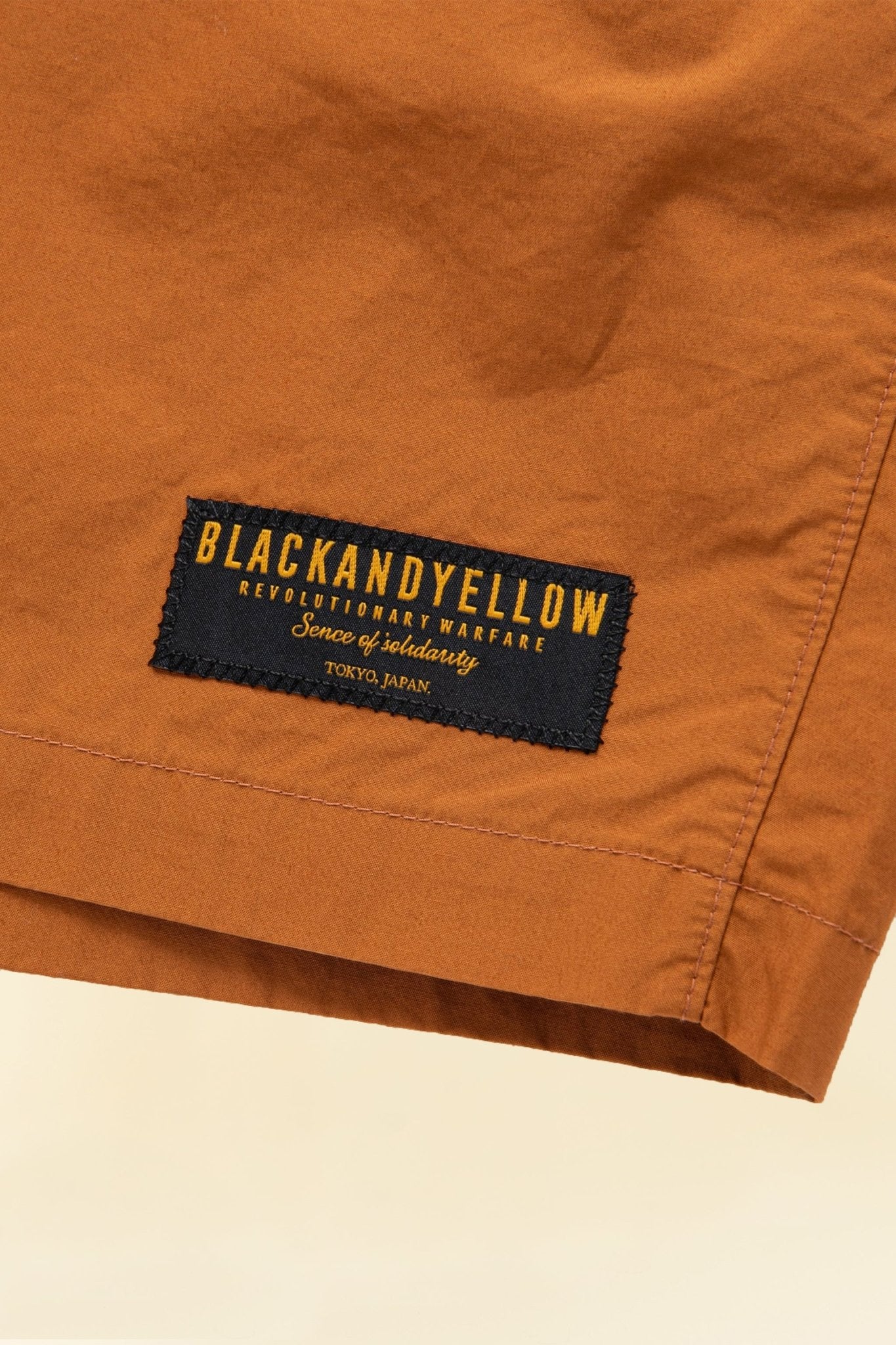 From Rats SS24 collection are these easy shorts made from an original cotton fabric with a crisp texture using Supima cotton. Baker-style slash pockets on both sides, patch pocket on the right back. A Rat motif embroidered tab is tucked into the side of the front left pocket, and BLACKANDYELLOW embroidered patch is sewn onto the left hem. A spindle is attached to the inside of the waist, allowing you to adjust the silhouette. One-wash finish. Slightly loose silhouette.