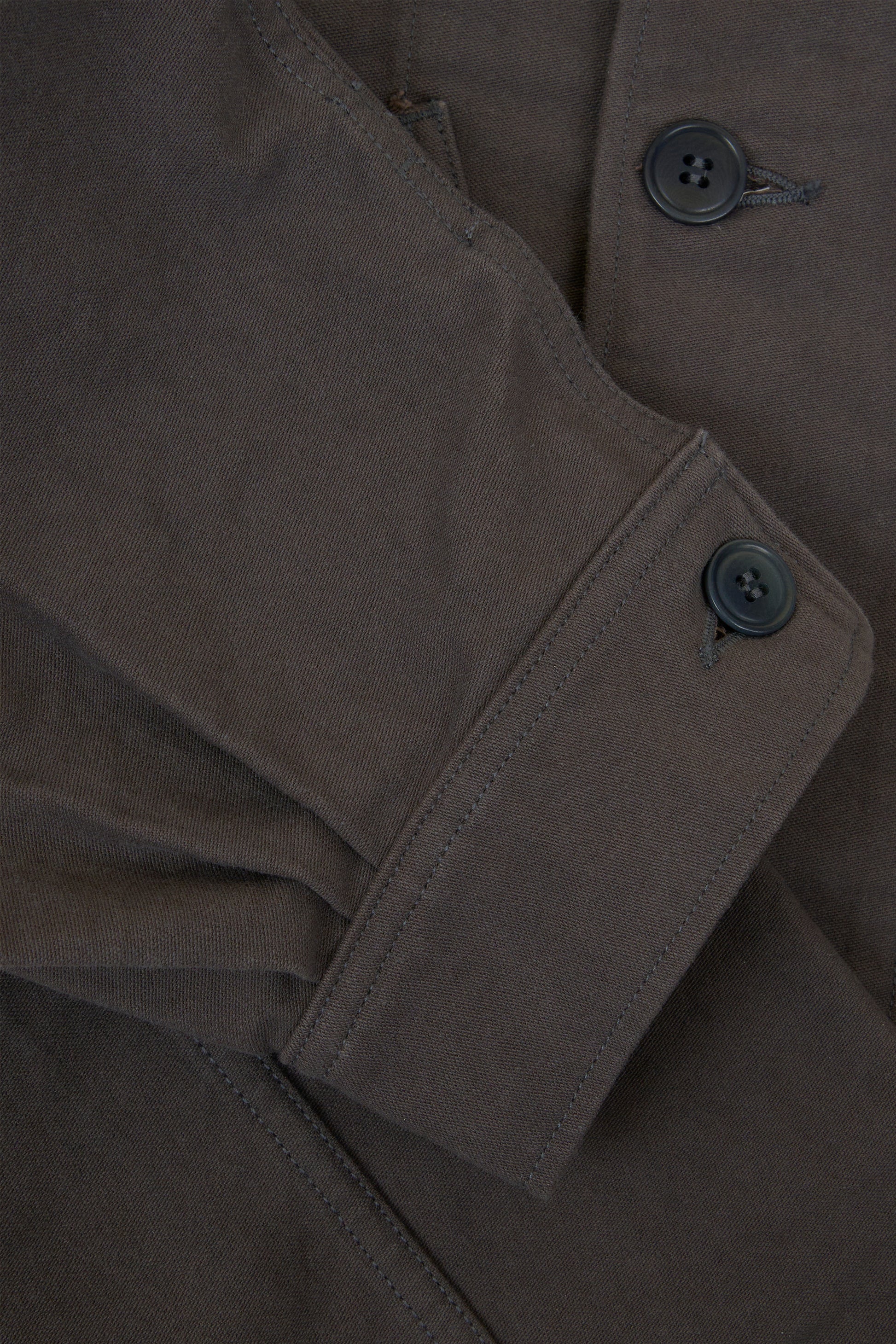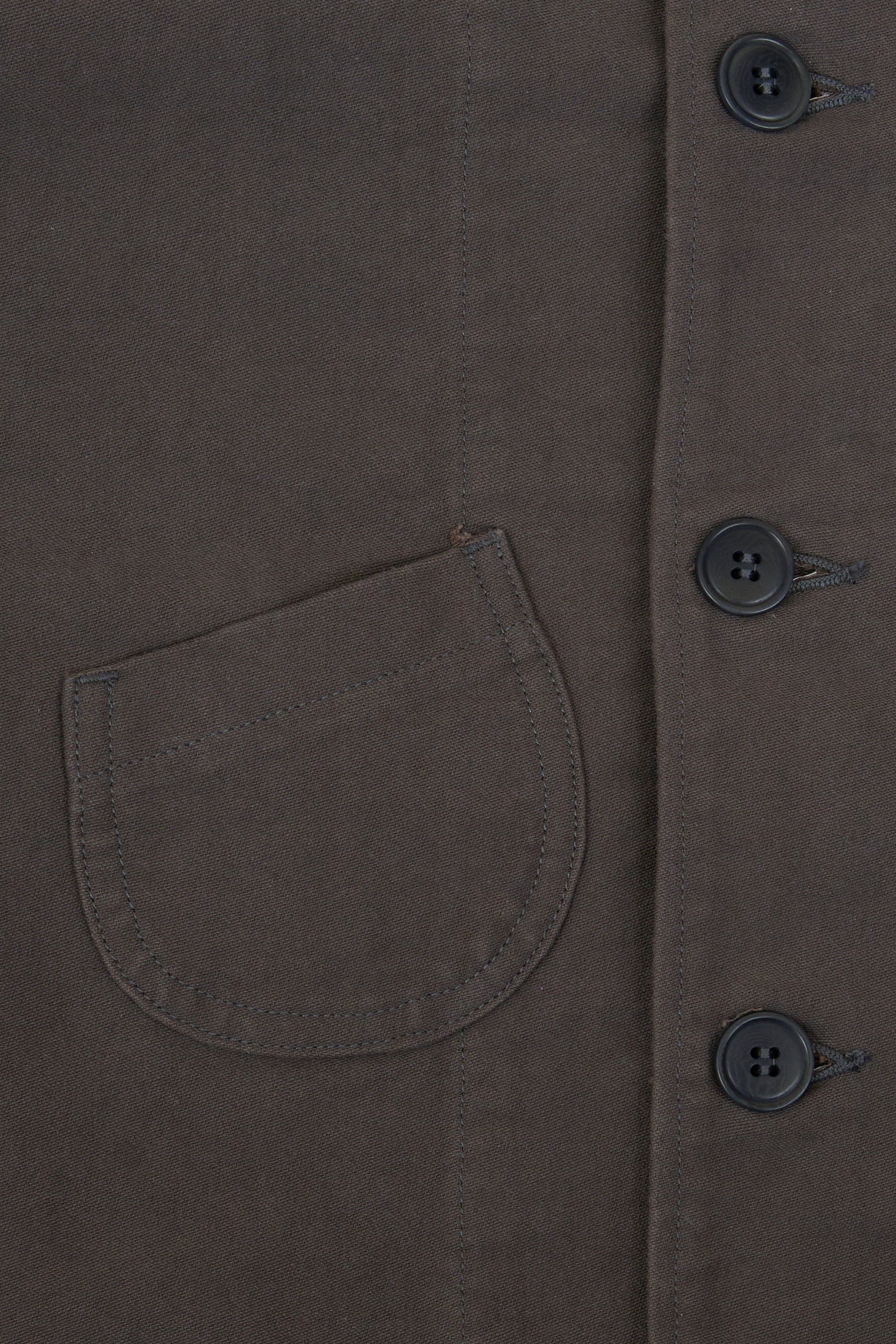 A refined work jacket inspired by vintage rail uniforms. Cut from washed cotton moleskin that softens and creases with wear.
