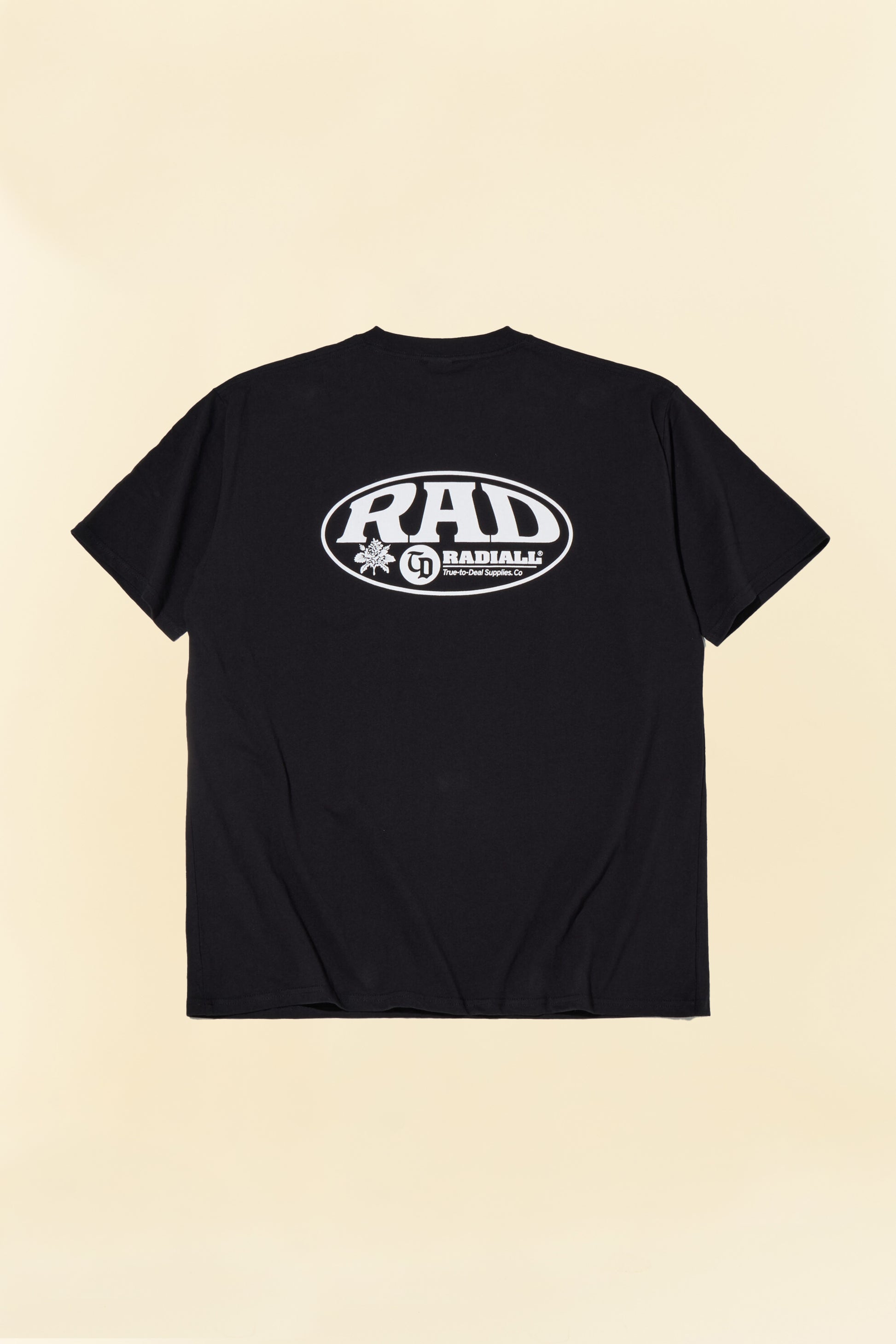 The Label Tee takes its cue from classic record label logos, reworking that bold graphic style into a piece that reflects Radiall’s roots in music and streetwear. Set against a black cotton base, the chest print captures the cultural mash ups that define the brand, blending subcultural reference with everyday wearability.