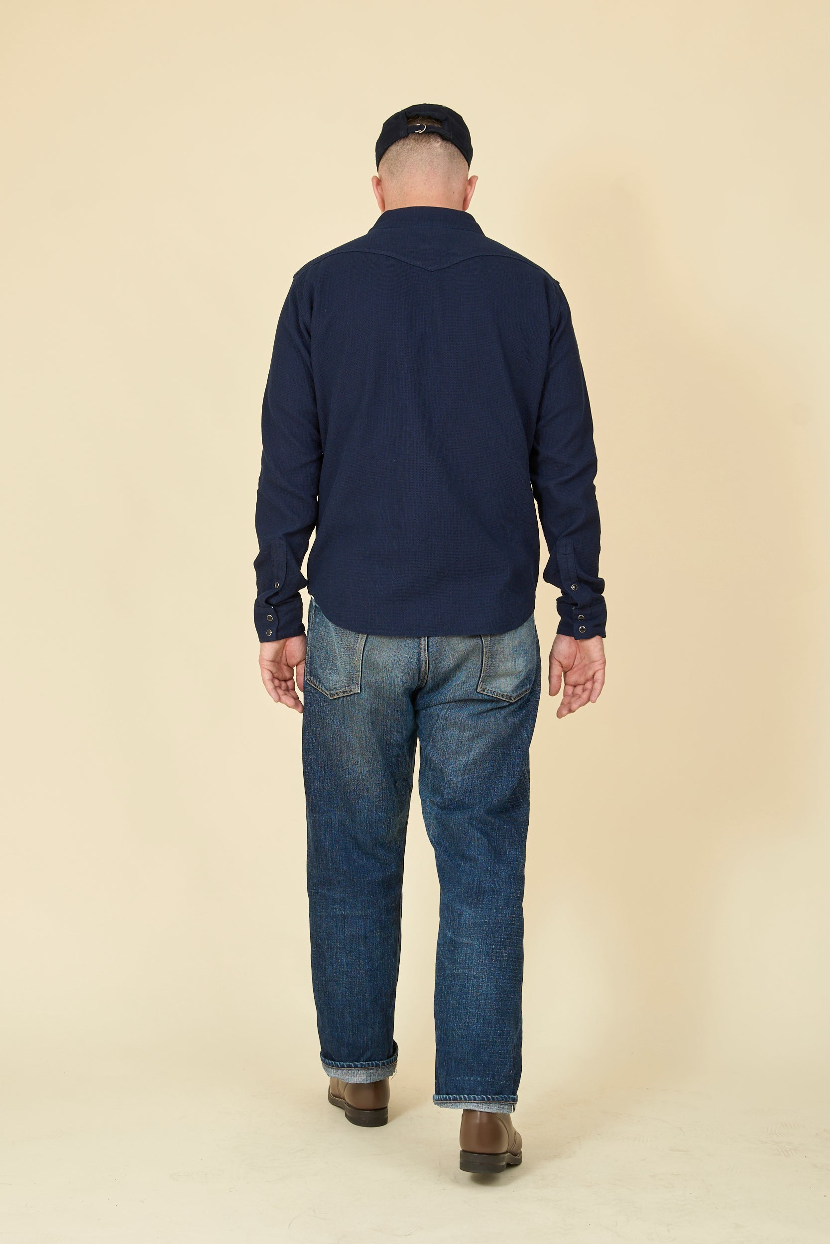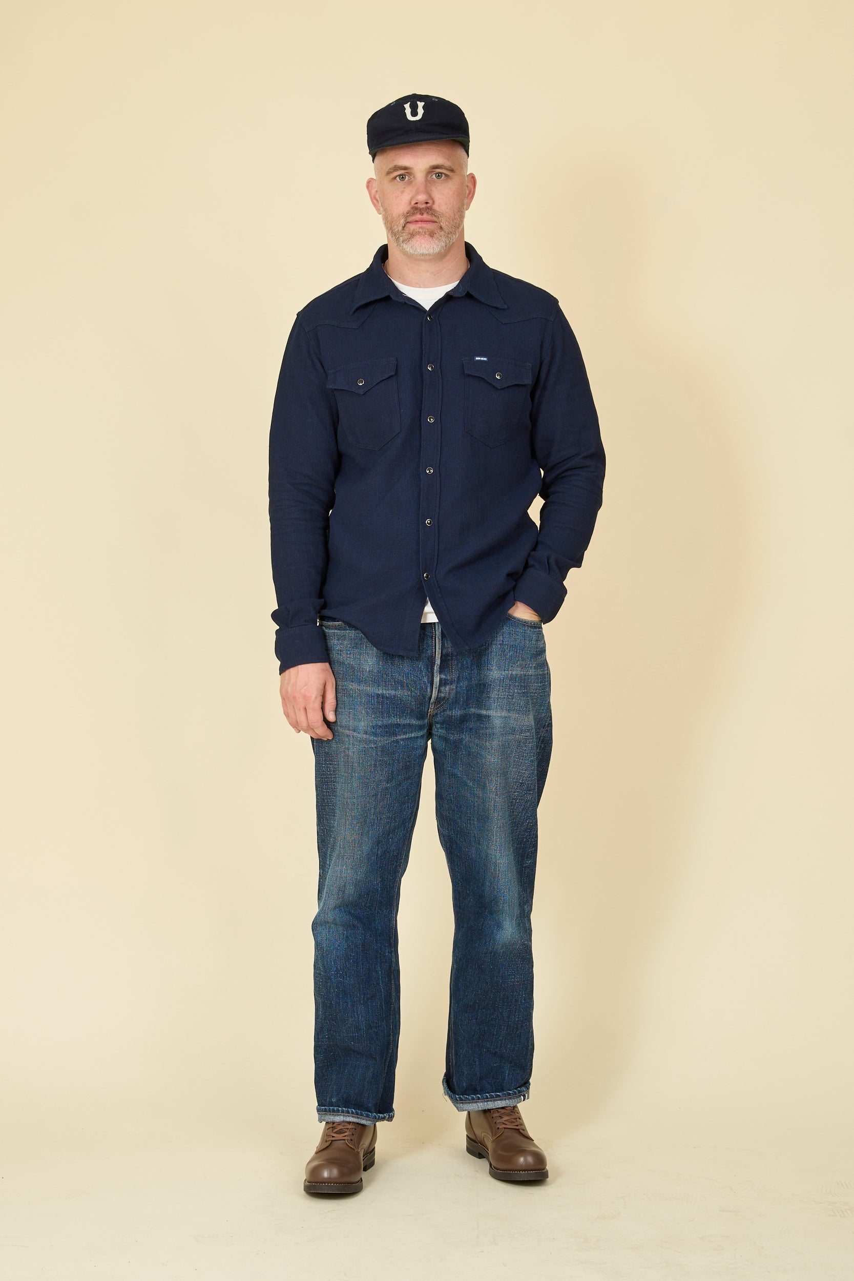 The shirt boasts classic Western details like flap patch pockets, snap fastenings, and front and back yokes. Built to endure daily wear, it’s constructed with single, double, and triple-needle stitching for maximum durability, and its indigo-dyed fabric will fade beautifully with time, creating a unique look that grows with you.