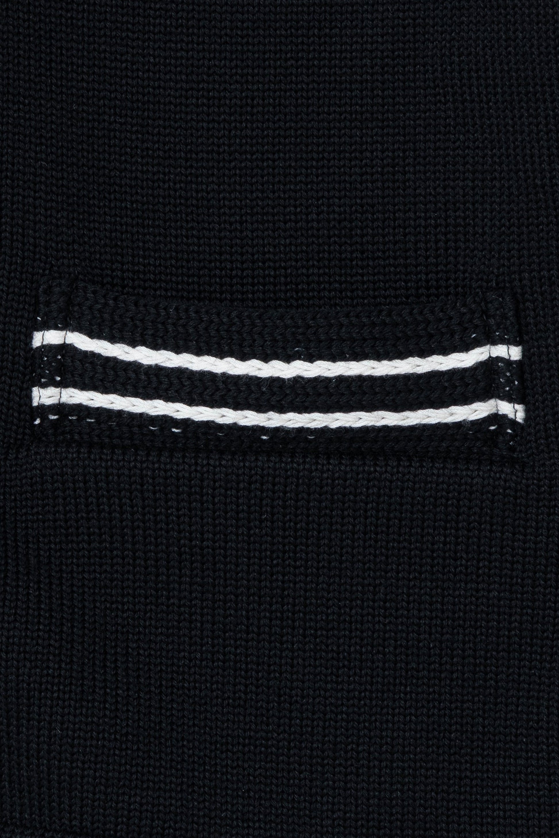 - Placket and pocket openings made with inlay stitch knitting.
