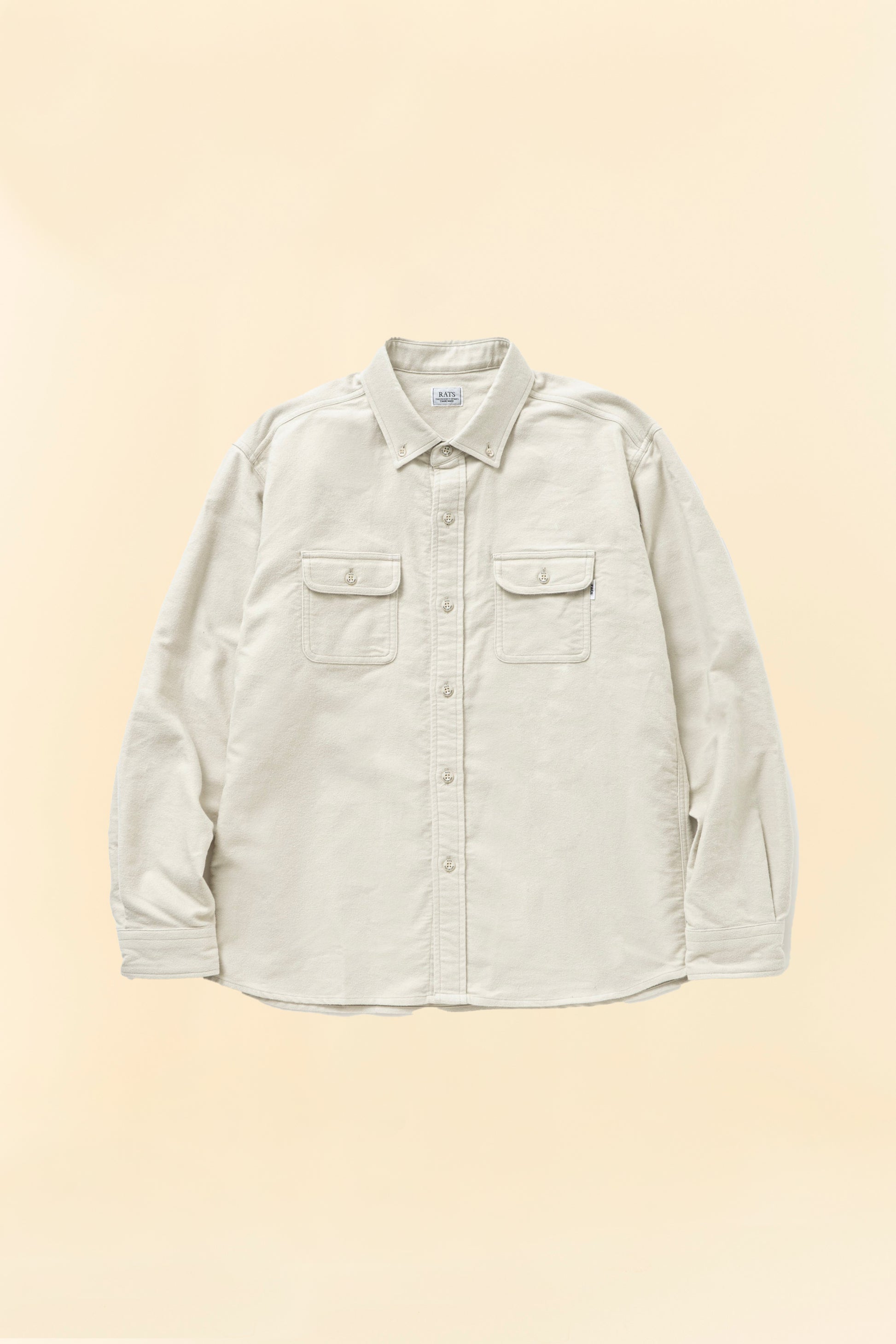 This button-down shirt from RATS is crafted from lightweight moleskin fabric by Brisbane Moss, a renowned British textile maker. Designed with practicality and detail in mind, it features dual chest flap pockets. Custom-engraved buttons bearing the "RATS・WAY OF LIFE" motto add a unique touch, while a bio-washed finish enhances their texture. The gently rounded hem and regular fit combine timeless style with everyday functionality.